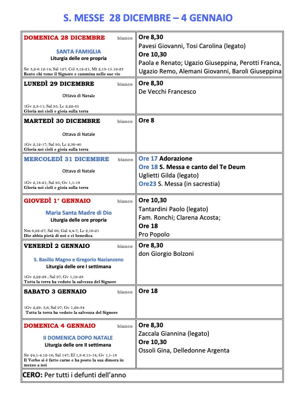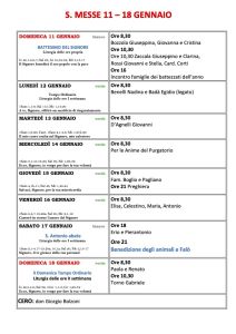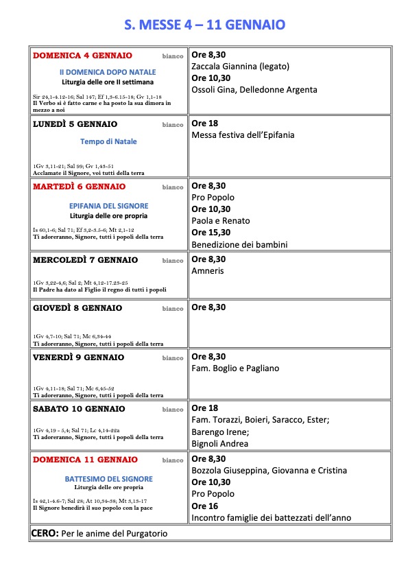 Calendario Liturgico Messe 11-18 gennaio 2026 ____________________ Messe 4-11 gennaio 2026 ____________________ Messe 28 dicembre 2025- 4 gennaio 2026 ____________________
