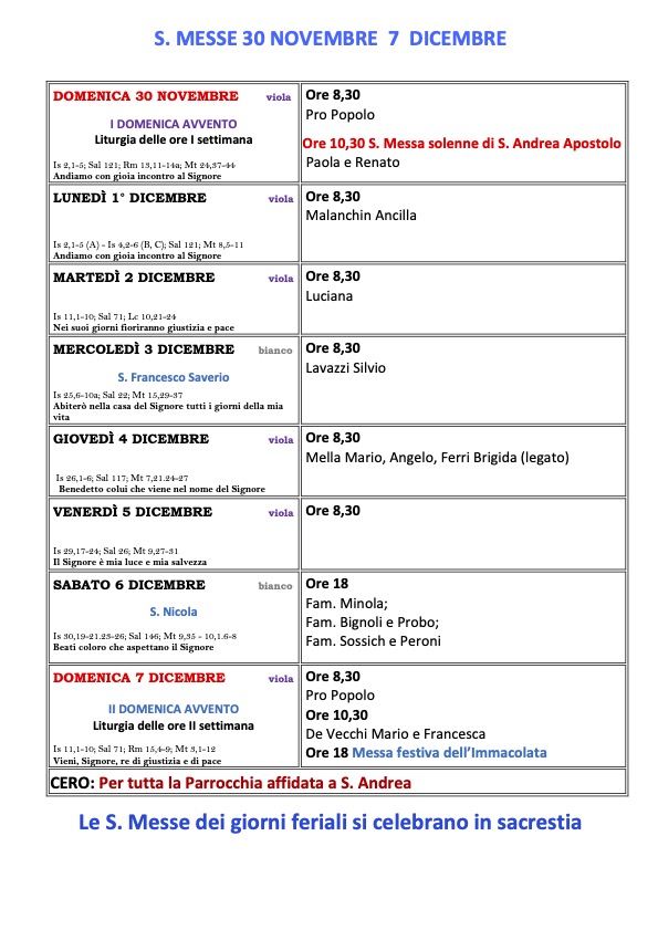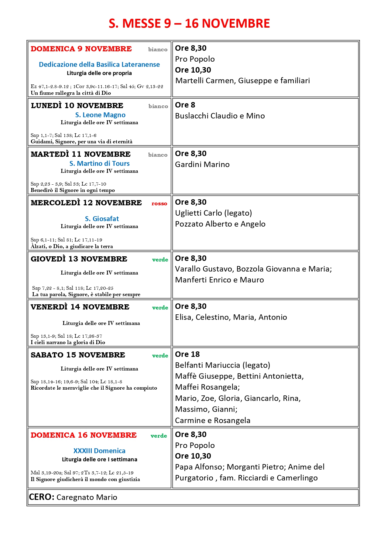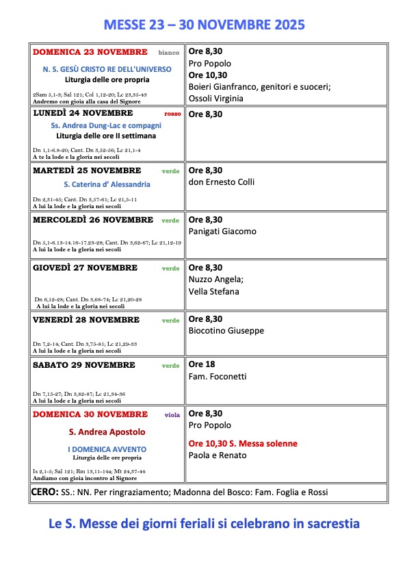 Calendario Liturgico Messe 30 novembre – 7 dicembre 2025 _____ Messe 23-30 novembre 2025 ______ Messe 9 – 16 novembre 2025 ______
